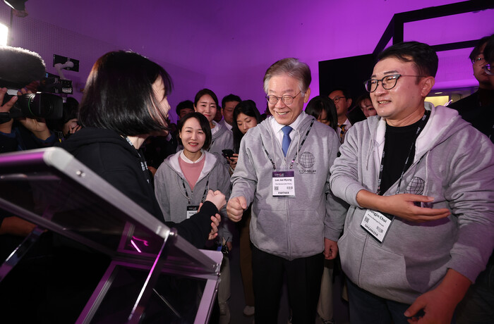 | ▲글로벌 스타트업 페스티벌 행사장을 찾은 이재명 대표 (사진=연합뉴스) |