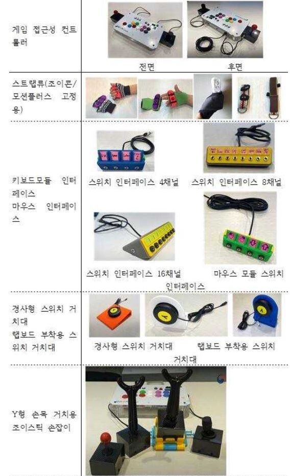 국립재활원에서는 “같이게임, 가치게임” 자조모임을 통해 게임접근성 보조기기 12종(개발 10종, 개조 2종)을 개발하였다.