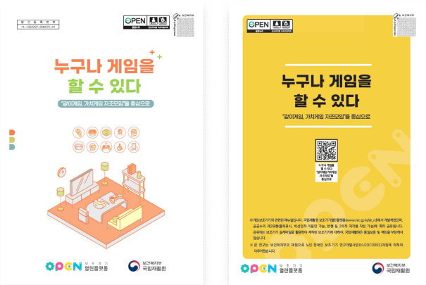 국립재활원(원장직무대리 김완호)은 노인.장애인의 여가활동 중 게임 접근성 향상을 위한 게임 접근성 보조기기 활용 지침(이하 ‘매뉴얼’)「누구나 게임을 할 수 있다 “같이 게임, 가치 게임 자조 모임”을 중심으로」를 발간했다.
