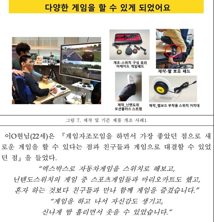 | ▲ 게임보조기기 자조모임 사례 및 체험 수기 |