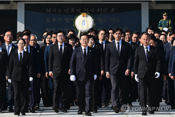 이재명 더불어민주당 대선 후보가 28일 현충원을 찾아 이승만, 박정희 전 대통령을 포함해 전직 대통령 묘역에 참배했다. 이 후보는 "역사적 평가는 역사가와 시민사회에 맡기자"며 이날도 '탈 이념 실용주의'를 강조 했다.