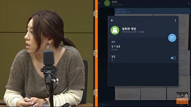 조씨는 뉴스버스의 전혁수 기자와 전날 밤 카카오톡을 통해 확인한 내용을 캡쳐한 사진을 공개했다. 그러나 이날 방송 직전 PD 등 제작진과 확인한 계정에는 탈퇴했다고 나왔다.