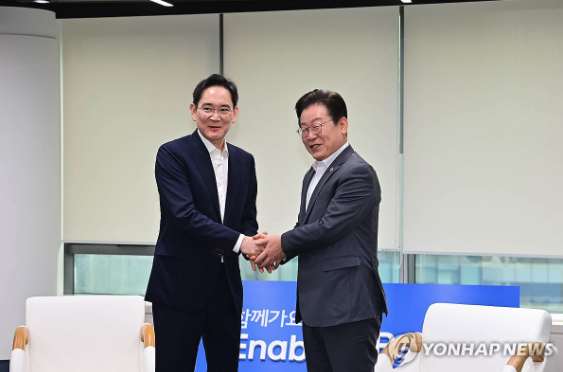 이에 이재명 대표는 "기업이 잘돼야 나라가 잘되고, 삼성이 잘 살아야 삼성 투자자도 잘 산다"고 화답했다.