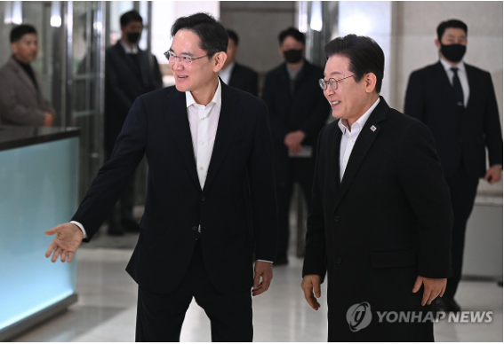 트럼프발(發) 관세 전쟁, 탄핵 정국으로 국내외 경영환경이 악화된 가운데 이재용 삼성전자 회장과 이재명 더불어민주당 대표가 만나 청년의 사회 진출 방안을 모색했다.