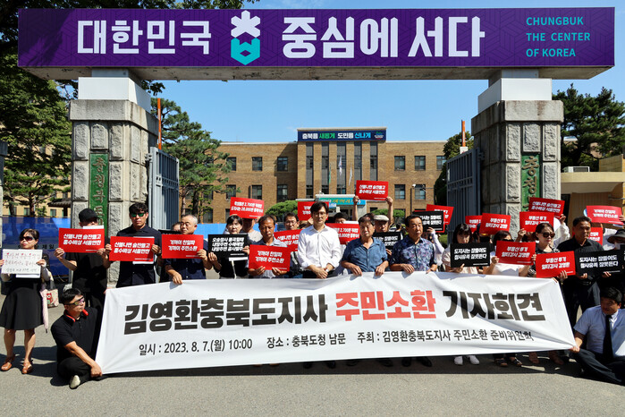 그러면서 "주민소환만이 무책임하고 정의롭지 못한 도지사를 직접 처벌할 수 있다"며 "그를 탄핵해 충북의 명예를 되찾겠다"고 목소리를 높였다.