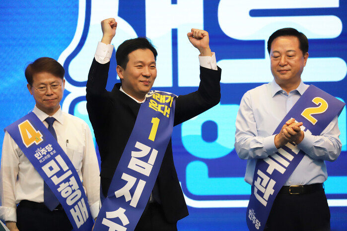 | ▲두 손 번쩍 들어올린 김지수 후보 (사진=시사타파뉴스 박성규) |