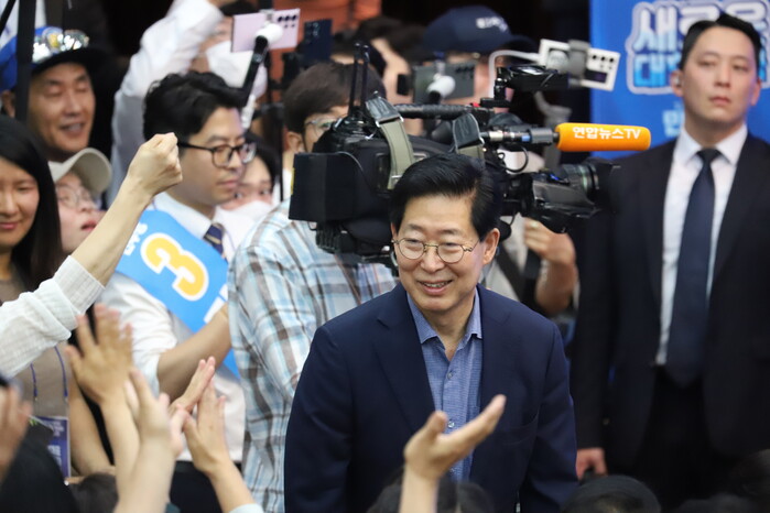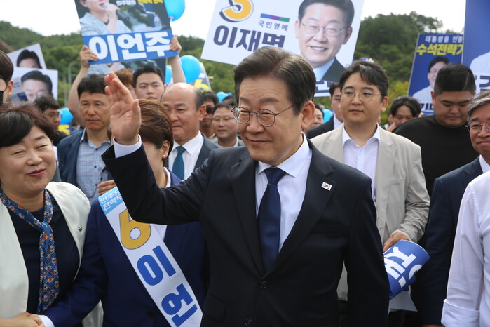 | ▲입장하는 이재명 후보 (사진=시사타파뉴스 박성규) |