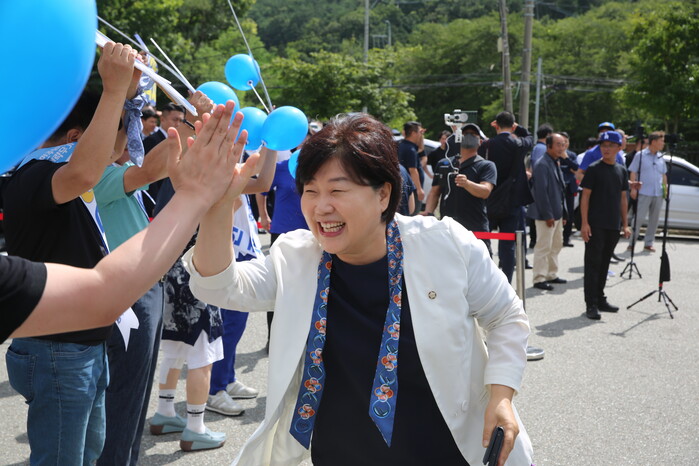 | ▲환영하는 당원들 (사진=시사타파뉴스 박성규) |