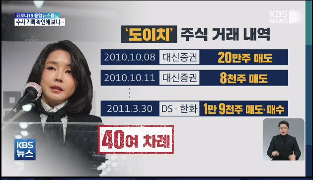 KBS는 9일 윤석열 국민의힘 대선후보 부인 "김건희씨가 도이치모터스 주가조작에 적극 가담" 한 사실을 추가로 보도했다.