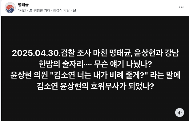 | ▲ 명태균 씨의 게시글 2025.8.4 (출처=명태균 페이스북) |