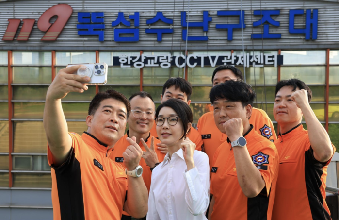 | ▲뚝섬 수난구조대 방문한 김건희 씨 (사진=연합뉴스) |