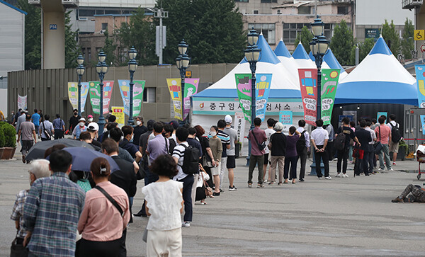 | ▲ 하루 코로나19 신규 확진자 수가 1200명을 넘어선 7일 오전 서울 중구 서울역 임시 선별검사소에서 시민들이 검사를 위해 길게 줄지어 서 있다. (사진=저작권자(c) 연합뉴스, 무단 전재-재배포 금지) |