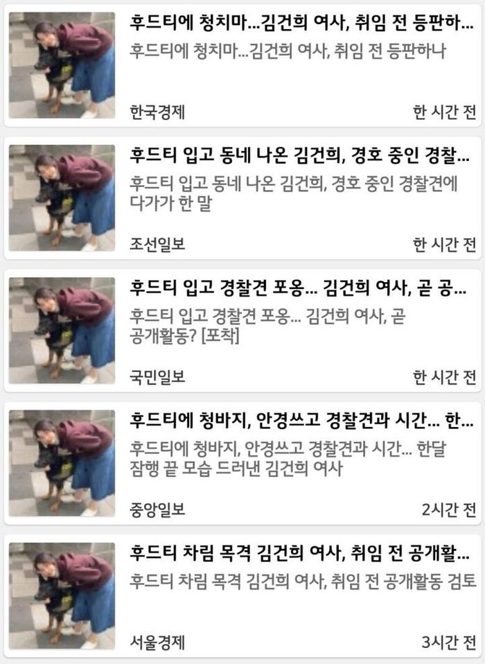 -후드티 입고 동네 나온 김건희, 경호 중인 경찰견에 다가가 한 말 -조선일보-