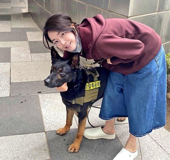 | ▲ 경찰특공견을 안고 찍은 김건희씨 |