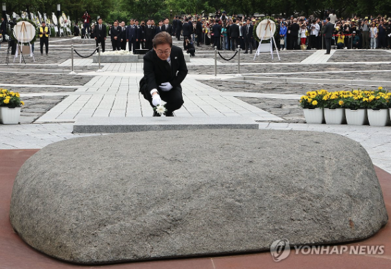 | ▲ 2025.5.23 노무현 전 대통령 16주기. 더불어민주당 이재명 대선 후보가 헌화하고 있다. (사진=연합뉴스) |
