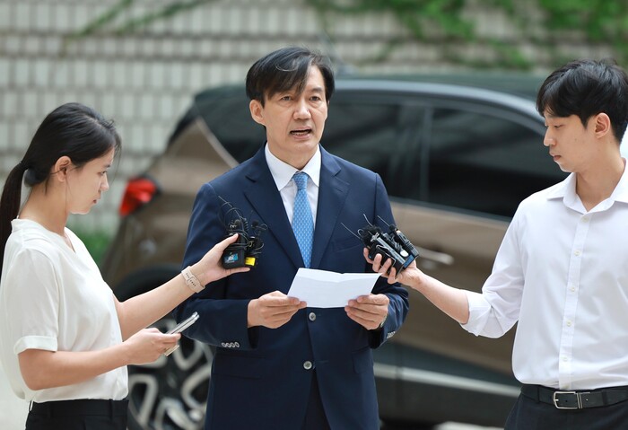 | ▲2심 출석하며 발언하는 조국 전 장관 (사진=연합뉴스) |