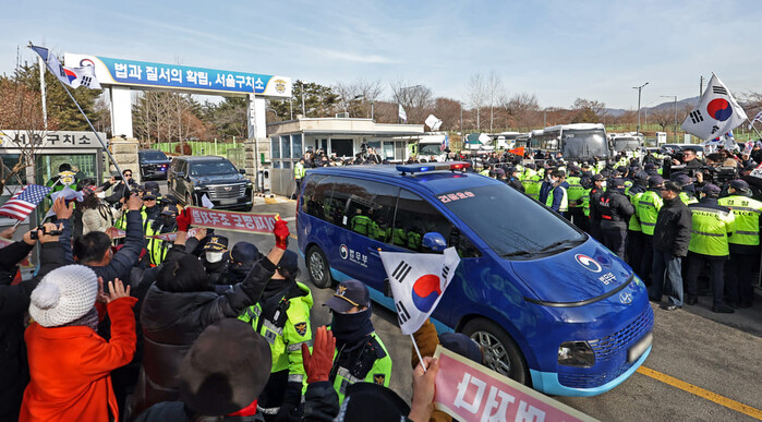 | ▲ 내란 우두머리 혐의로 체포된 윤석열이 탑승한 차량이 서울구치소에서 나와 영장 실질심사가 열리는 서울서부지법으로 향하고 있다. (사진=연합뉴스) |