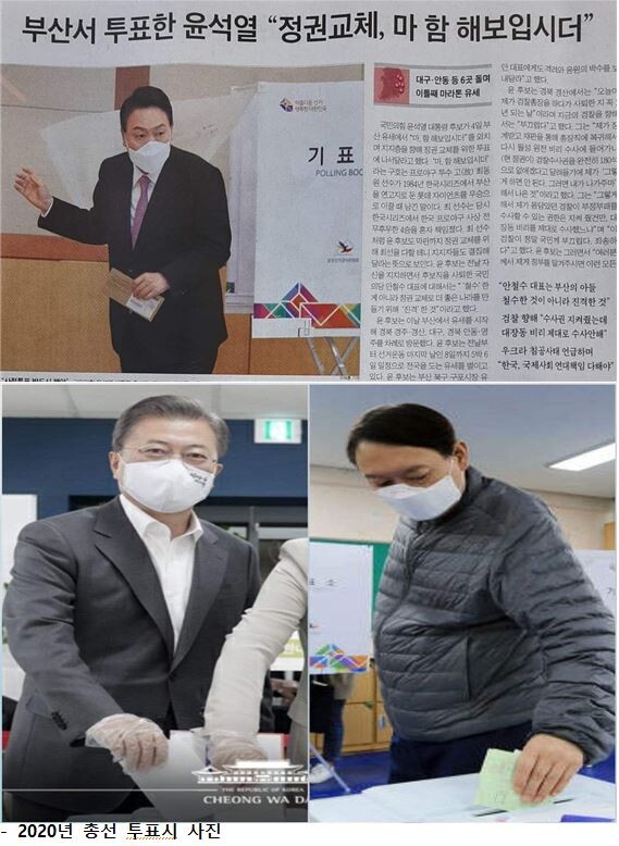 "윤석열씨는 지난 총선 때도 국민들은 귀찮고 답답해도 다 하는 비닐장갑을 착용하지 않고 투표를 해서 물의를 일으켰는데, 이번 3월 4일 부산 남구 사전투표에서도(새치기 의혹, 얼굴 확인도 안한 문제는 별개로 하더라도) 발열체크도 하지 않고, 비닐장갑도 끼지 않고 투표를 하였습니다. 이는 당일 윤석열 후보 사전 투표 사진이나 동영상을 보면 누구나 쉽게 알 수 있습니다. 상습적인 방역법규 위반에 이어 또다시 방역법규를 위반한 것입니다." |