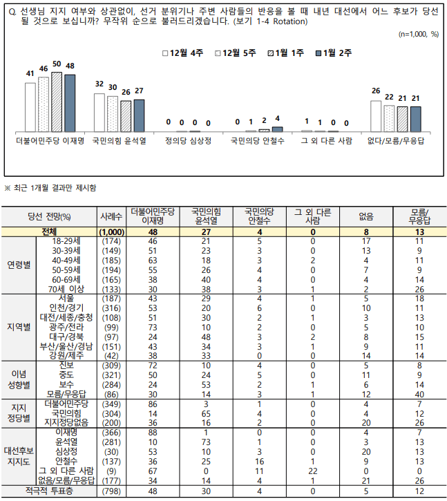 ▶️대선당선전망:이재명 48% > 윤석열 27%