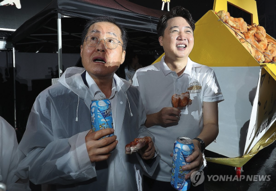 | ▲ 2023.8.30 대구치맥페스티벌 개막싱게 참석한 이준석과 홍준표 (사진=연합뉴스) |