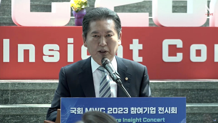 | ▲ 국회 MWC 2023 개회를 선언하는 정청래 과방위원장 (이미지캡쳐=델리민주) |