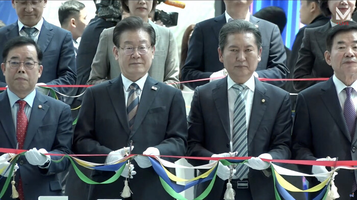 | ▲ 개회식에 참석한 이재명 당대표와 정청래 과방위원장 (이미지 캡쳐=델리민주) |