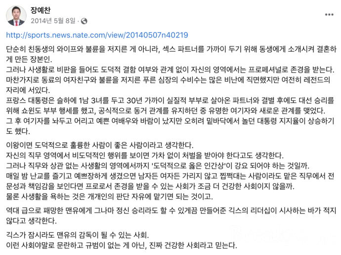 | ▲장예찬 페이스북 (브레이크뉴스에서 재인용) |