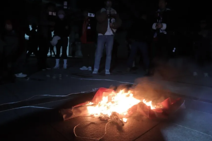 | ▲ 집회 물품 태우는 유투버 (사진=연합뉴스) |