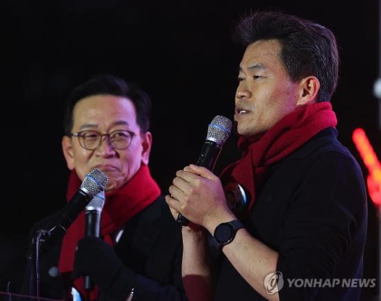 | ▲ 윤석열 측 석동현 변호사가 극우집회서 발언하는 전한길을 흐뭇하게 바라보는 모습 (사진=연합뉴스) |