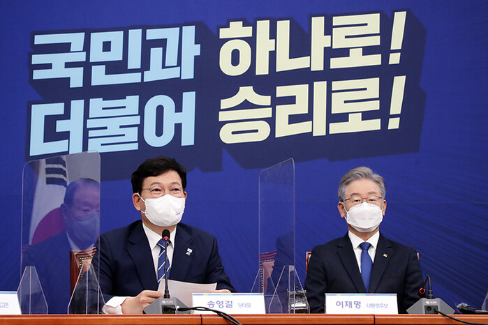 송영길 당대표는 국민과 당원 동지들의 뜨거운 지지 속에 경선이 진행되어 매우 기쁘게 생각합니다. 끝까지 경선에 함께 참여해주신 존경하는 이낙연 의원님, 추미애 후보님, 박용진 후보님과 정세균, 김두관 후보님께도 감사를 드립니다.