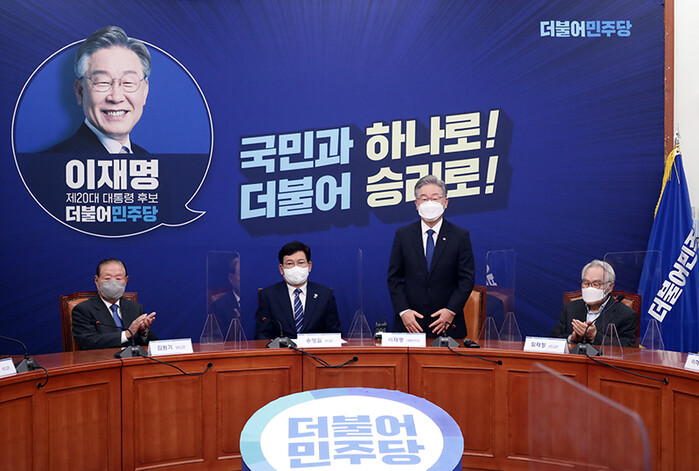 이재명 더불어민주당 대선후보는 내년 대통령 선거는 특정 개인의 승리가 아니라 민주개혁진영의 승리가 중요한 선거입니다. 더불어민주당 당원의 한 사람으로서 저 개인이 아니라 더불어민주당의 승리, 민주개혁진영의 승리, 4기 민주정부 창출을 위해서 우리 당 원로고문들을 모시고 최선을 다하겠다는 말씀을 드린다고 하였다.