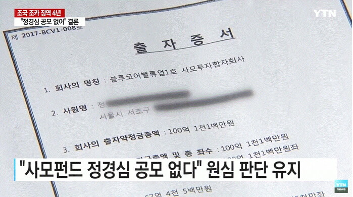 대법원 3부(주심 대법관 노정희)는 30일, "조국 전 법무부 장관의 가족이 돈을 댄 사모펀드"를 운영하면서 특정경제범죄 가중처법법상 횡령, "회삿돈을 횡령한 혐의" 등으로 기소된 조 전 장관의 5촌 조카 조씨의 상고심에서 징역 4년에 벌금 5000만원을 선고한 원심을 확정했다.