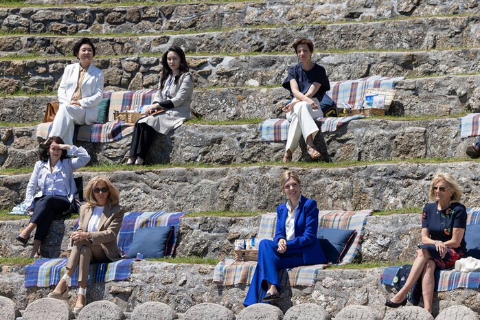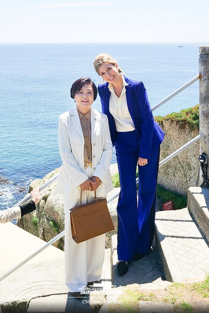 이어서 프랑스의 마크롱 여사와는 팬데믹 시대 교육 문제와 원격수업으로 인한 교육 격차의 심각함에 관하여 이야기를 함께하고, G7 주최국인 영국의 총리 부인 캐리 존슨 여사에게는 "의미 깊은 공연을 함께 관람“할 기회를 마련해 주어서 기쁘다며 "결혼을 축하”한다는 말로 고마움을 표시했다.