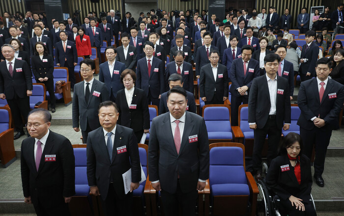 국민의힘과 국민의미래 당선인들은 이날 채택한 결의문에서 "다시 시작하겠다. 기득권을 내려놓고 오직 국민만 바라보고 한마음 한뜻으로 변화해 나가겠다"고 밝혔다.