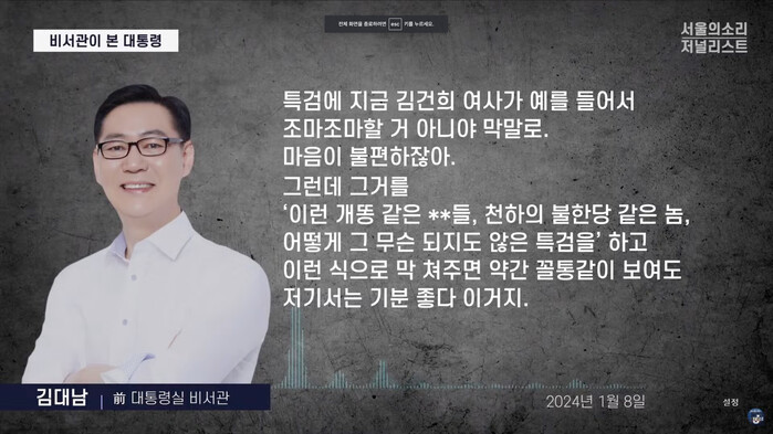 서울의소리와 저널리스트가 지난 30일 저녁, 김대남 대통령실 전 행정관과 이명수 기자와의 녹취록 2탄을 보도했다.