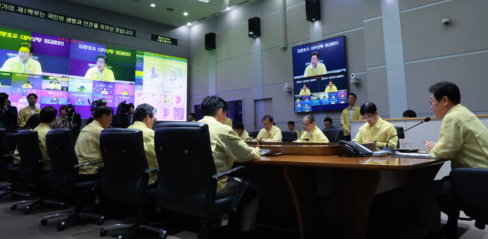 이 대통령은 회의 모두발언에서 "어제오늘 계속 폭우가 쏟아져서 여기저기서 인적, 물적 피해가 발생하고 있다"며 깊은 우려를 표했다. 그는 "행정안전부를 중심으로 전 부처와 기관들이 쓸 수 있는 모든 자원과 행정력을 총동원해야 될 것 같다"고 말하며 범정부적 총력 대응 체계를 주문했다.