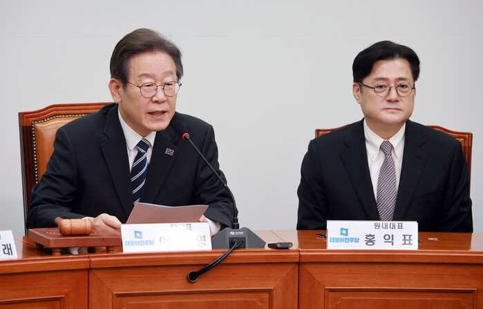 반면, 더불어민주당 의원총회에 참석한 이재명 대표는 민생 예산을 복원하고 특검과 방송장악을 막아낼 것이라고 말했다.