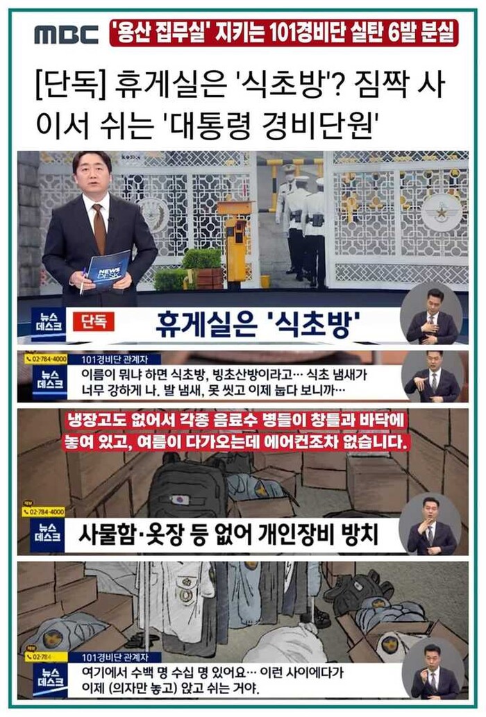 대통령실 주변을 경비하는 경찰 소속 101경비단에서 실탄 분실 사고가 발생해 기강해이로 논란이 되고 있는 가운데 30일 MBC, KBS 등의 보도로 알려진 경비단의 실상이 충격적이다.