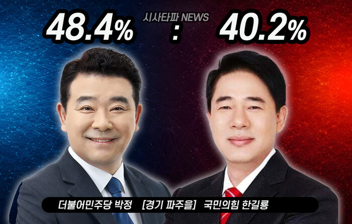 27일 발표된 파주을 여론조사 결과 더불어민주당 박정 현역의원이 48.4%, 도전자인 국민의힘 한길룡 후보가 40.2%로 오차범위내 접전을 벌이는 것으로 드러났다.