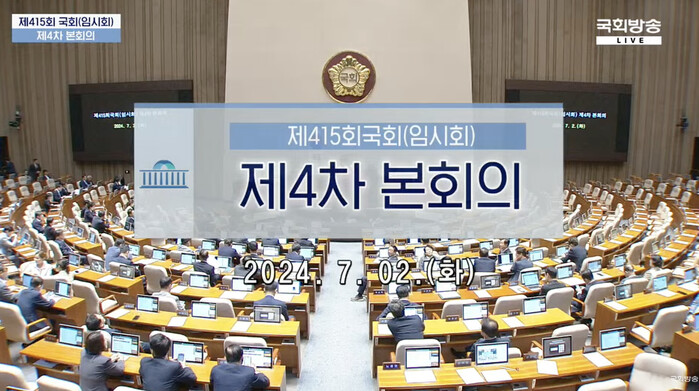 | ▲국회방송에서 대기중인 제4차 본회의 송출화면 캡쳐 |