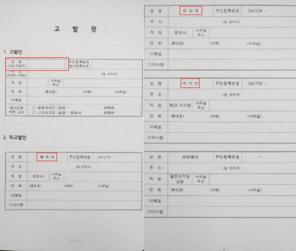 | ▲지난해 4월 3일 손준성 당시 대검찰청 수사정보정책관이 김웅 당시 미래통합당 송파 갑 국회의원 후보자에게 전달한 고발장 일부. 고발인란은 빈칸이며 피고발인란에 황희석, 최강욱 당시 열린민주당 비례대표 후보와 유시민 노무현재단 이사장의 이름이 적시돼 있다. (자료=뉴스버스) |