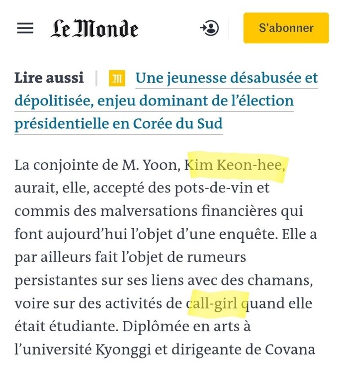 르몽드지의 ' Kim keon hee , call-girl , 김건희 이름 석자 와 콜걸 보도"