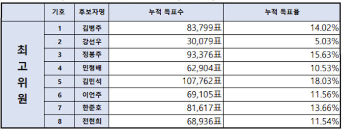 | ▲4주차 전당대회 최고위원 누적 득표수 및 득표율 화면 캡쳐 |