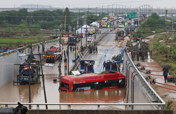 | ▲오송 지하차도에서 모습을 드러낸 침수 버스 (사진=연합뉴스) |