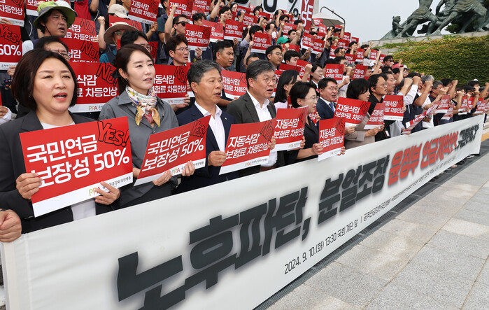 반면 더불어민주당은 '소득대체율 42%'를 제시한 정부안에 대해 노인 빈곤을 심화시키는 졸속 개혁안이라고 혹평했다.