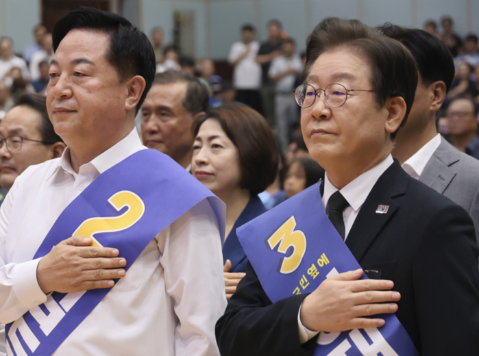 | ▲ 이재명 후보와 김두관 후보(사진=연합뉴스) |