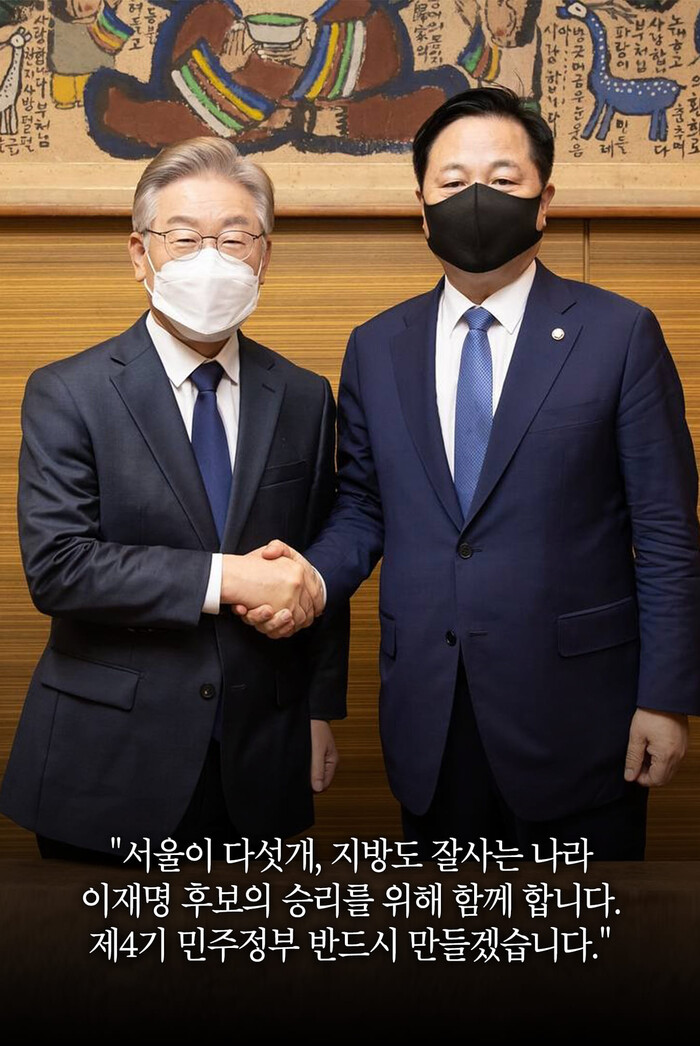 일찌감치 이재명 후보 지지선언에 나섰던 김 의원은 “민주당 축제의 자리가 이상하게 변질되고 있다” 며, “민주당은 이미 사퇴한 후보의 득표는 무효로 처리하기로 합의된 룰을 갖고 있었다” 라고 했다. 그러면서 “원칙을 훼손하려는 어떤 세력도 민주당의 역사에 큰 죄를 짓게 될 것” 이라 했다.