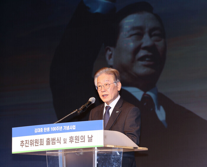 | ▲ 이재명 더불어민주당대표가 김대중 탄생 100주년 기념사업 추진위원회 출범식에서 축사를 하고 있다. (사진=연합뉴스) |