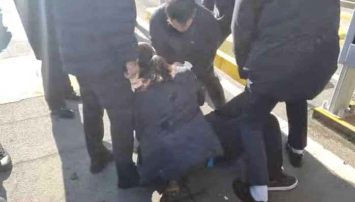 한국대학생진보연합(대진연) 회원들이 6일 서울 용산 대통령실 진입을 시도하다 경찰에 체포됐다.