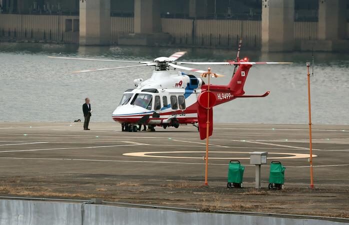 긴급 조치를 취한 후 이재명 더불어민주당 대표를 태우고 부산대병원을 출발한 의료 헬기가 오후 3시경 용산 노들섬에 도착했다.